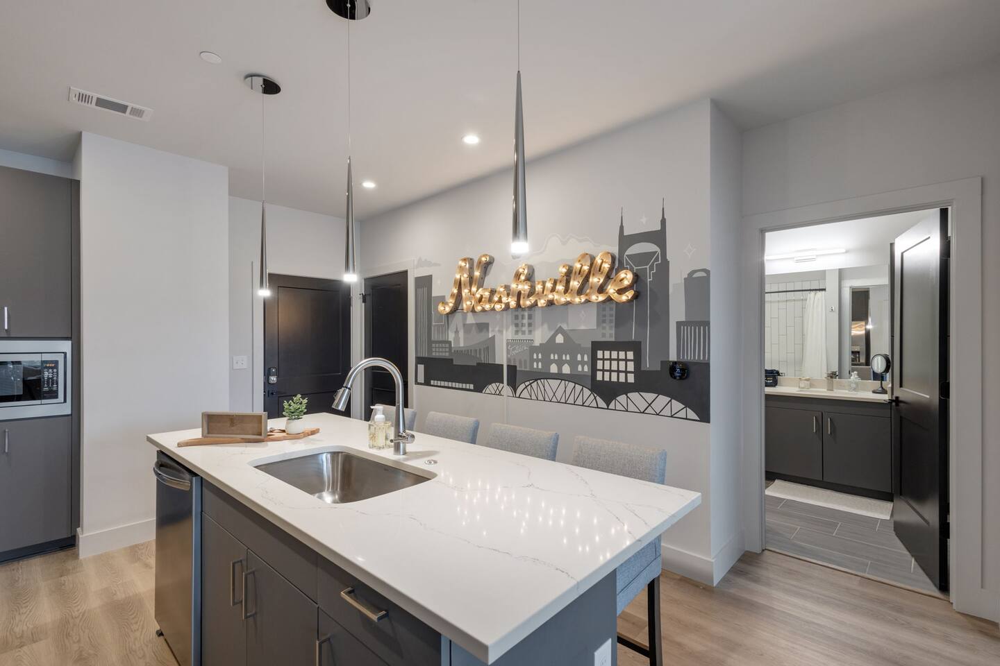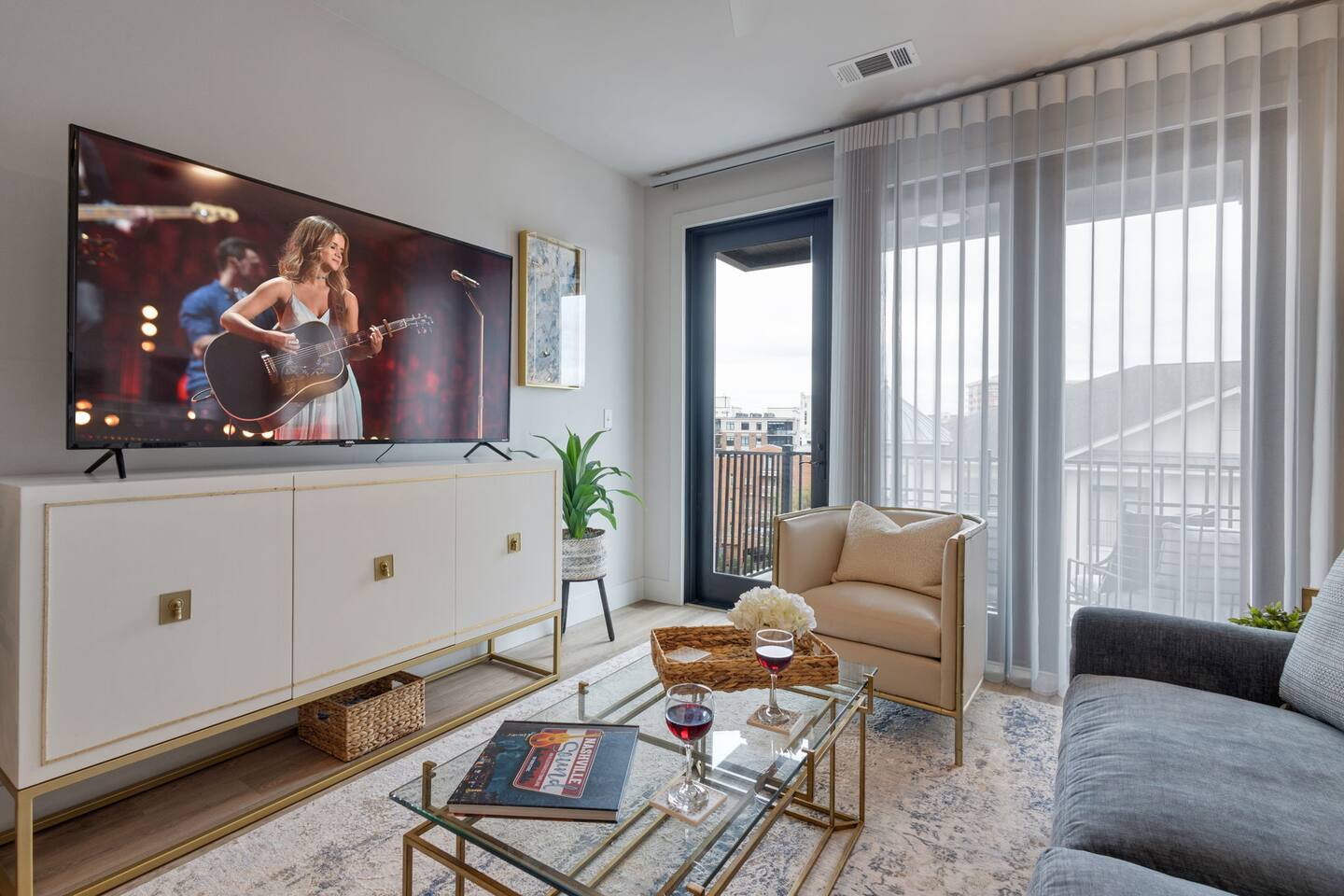 Welcome to Centennial Penthouse, an exceptional top-floor one-bedroom penthouse located in the vibrant heart of Midtown Nashville. Situated within the brand-new Odyssey at the Park building, this luxurious home offers the perfect combination of comfort and style, ensuring an unforgettable stay. From your private balcony, enjoy sweeping, panoramic views of Music City. Whether you’re sipping your morning coffee or enjoying an evening nightcap, the expansive balcony provides a front-row seat to the city's breathtaking skyline and vibrant energy, creating a serene yet dynamic atmosphere. Centennial Penthouse’s prime location puts you just steps away from some of Nashville’s most iconic attractions. A short two-block walk takes you to Centennial Park, featuring lush greenery, scenic walking trails, and the famous Parthenon replica. Midtown is also a haven for food lovers, with a wide variety of restaurants, bars, cafes, and local eateries nearby. For music enthusiasts, Nashville’s legendary honky-tonks and live music venues are just a five-minute drive away. Additionally, the penthouse is located within close proximity to Vanderbilt Medical Center, making it a convenient and comfortable choice for those visiting the area for medical appointments or treatments. Inside, the living area exudes both luxury and coziness, bathed in natural light streaming through expansive floor-to-ceiling windows. Plush seating provides the perfect spot to unwind and enjoy your favorite shows on the smart TV. Sophisticated gold and beige decor create a warm and stylish ambiance, while the private balcony invites you to relax and take in the breathtaking city views. The open-concept kitchen is fully equipped with essential cookware and utensils, making meal preparation easy and enjoyable. Whether you’re cooking a light breakfast, a late-night snack, or simply enjoying local takeout, this kitchen is ready for every culinary need. Its seamless connection to the living area makes it an ideal space for entertaining or relaxing. The bedroom offers a peaceful retreat after a day of exploring. It features a plush king-sized bed, a smart TV, and a spacious walk-in closet. The en-suite bathroom includes a shower and tub combination and connects to the living area through a convenient Jack-and-Jill layout, adding to the overall functionality and comfort of the space. As a guest of Odyssey, you’ll enjoy exclusive access to a range of resort-style amenities. These include a sparkling pool with sun loungers and BBQ grills, perfect for summer relaxation, and a state-of-the-art fitness center to maintain your workout routine during your stay. Centennial Penthouse is thoughtfully adorned with lavish gold furnishings, evoking a sense of grandeur inspired by the Olympian gods. This blend of warmth and sophistication ensures an unforgettable experience, whether you’re enjoying a nightcap under the city lights or stepping out to explore Nashville’s vibrant attractions. Sleeping arrangements include a primary bedroom with a king-sized bed, smart TV, a walk-in closet, and an en-suite bathroom featuring a shower/tub combination with Jack-and-Jill access to the living area. Whether you’re visiting for business, leisure, or medical needs, Centennial Penthouse offers the perfect home base for exploring the best of Nashville. Book your stay and let Music City elevate your getaway. Walking distance to hundreds of Midtown - West End attractions and 5 minutes to Broadway! 1 min: Centennial Park 1 min: The Parthenon 2 mins: Taylor Swift Bench 2 mins: The Local Nashville 2 mins: BrickTop's 2 mins: Bombay Palace 2 mins: Red's Hot Chicken 2 mins: Newk's Eatery 2 mins: Maggiano's Little Italy 2 mins: Starbucks 2 mins: J Alexander's Restaurant 2 mins: SandBar Nashville 2 mins: Avo 2 mins: Vanderbilt University 3 mins: Climb Nashville 4 mins: Tennessee State University 4 mins: Hillsboro-West End 5 mins: Broadway 5 mins: Nashville Yards (Amazon HQ2) 5 mins: Vanderbilt University Medical Center 5 mins: Music Row 5 mins: The Nations 6 mins: Music City Center 6 mins: RCA Studio 6 mins: Belmont Mansion 6 mins: McCabe Golf Club 6 mins: Ted Rhodes Golf Club 7 mins: Sobro 7 mins: The Gulch 7 mins: Germantown 7 mins: Country Music Hall of Fame and Museum 7 mins: Patterson 8 mins: Nissan Stadium 8 mins: Bridgestone Arena 8 mins: Johnny Cash Museum 9 mins: Martin's Bar-B-Que 9 mins: Top Golf 9 mins: 12 South District 10 mins: Geodis Park 12 mins: Nashville Zoo 17 mins: Grand Ole Opry