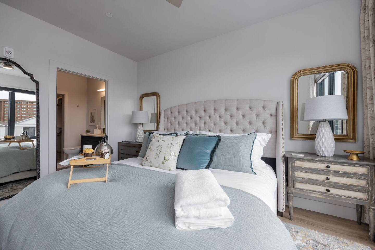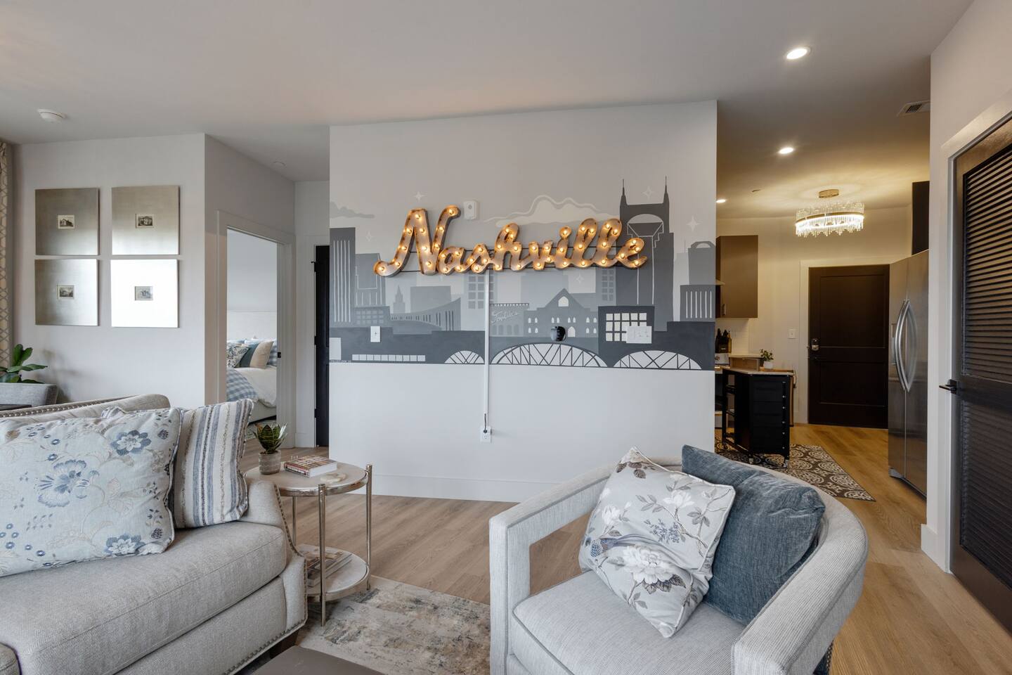 This unique 3-bedroom, 3-bathroom listing combines two neighboring top-floor units in the Odyssey building, perfect for groups or families. With stylish interiors, fully equipped kitchens, high-speed WiFi, Smart TVs, and two private balconies offering stunning Nashville skyline views, it accommodates up to 10 guests. Located minutes from Broadway, Nissan Stadium, and top dining, this spacious setup provides the ideal blend of comfort, flexibility, and convenience in the heart of Nashville.