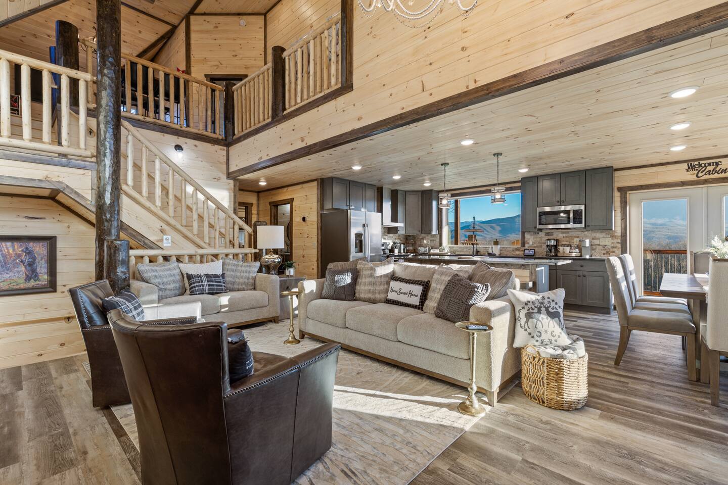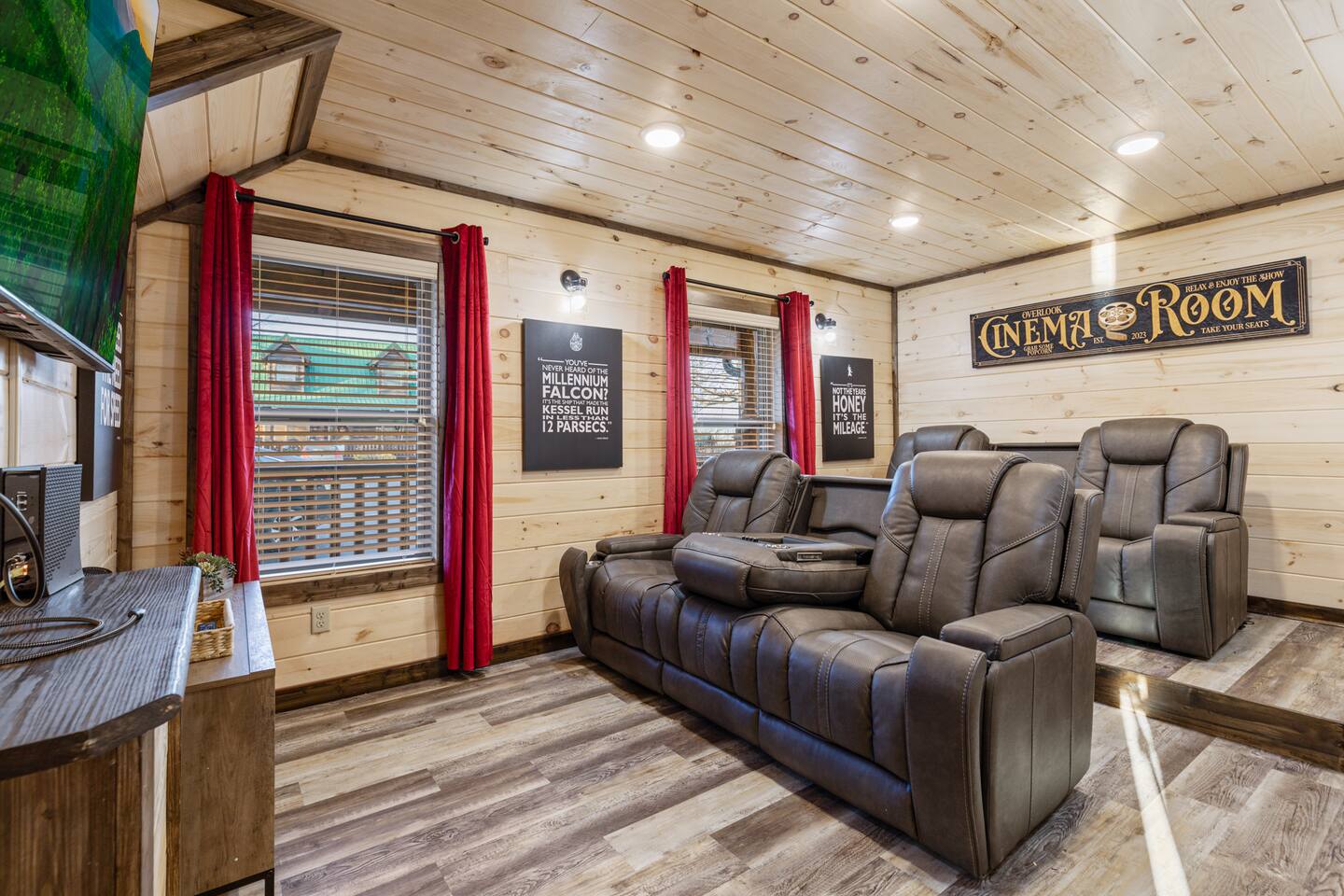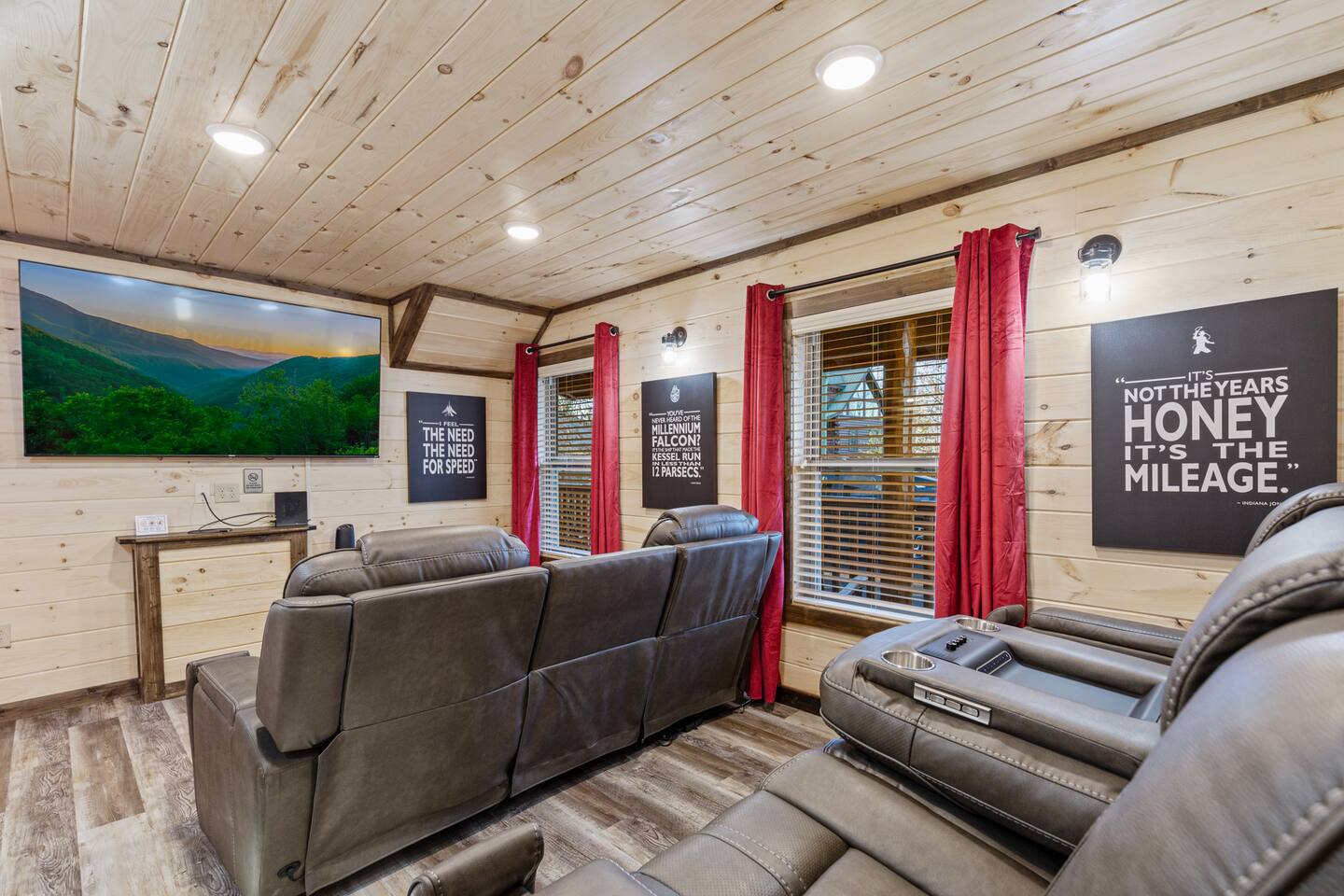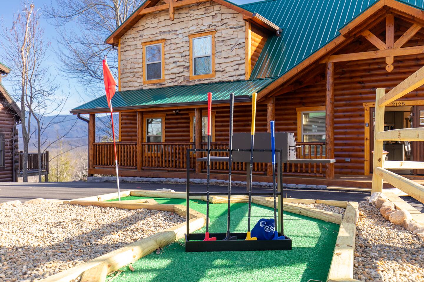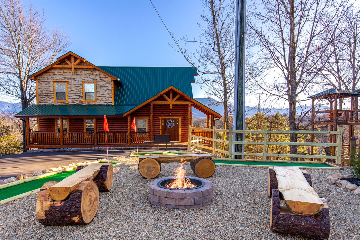 Come see why this is a guest favorite with all 5-star reviews! Nestled amidst the breathtaking Smoky Mountains, The Overlook at Settler's Ridge offers an unrivaled escape for your vacation needs. Embrace the allure of this newly constructed cabin, inaugurated in November 2023, boasting a panoramic view of Mt. LeConte and the picturesque surroundings. This retreat spans three levels and comprises four bedrooms, each accompanied by an exquisite en-suite bathroom. Elevate your stay with a fusion of cabin-chic aesthetics and opulent furnishings, meticulously curated to soothe your senses and elevate your experience. With its prime location mere miles from downtown Gatlinburg, and within moments of hiking trails, waterfalls, Pigeon Forge, and the allure of Dollywood, every convenience is at your fingertips. The main level's open floor plan fosters cherished moments for families and friends to forge lifelong memories. Bask in the serene mountain ambiance from the expansive decks adorned with Adirondack chairs and rockers, or savor intimate moments in the gazebo swing on the main level, tailored for couples seeking seclusion. Just added in January 2024 - an outdoor entertainment area with firepit and custom wood benches, 2 golf holes, and large grill for outdoor cooking! Discover comfort and luxury within the cabin's interiors, featuring a private king bedroom on the main floor, and two additional private king bedrooms on the upper level. The lower level beckons with a bunk room equipped with two sets of full over full bunk beds, complemented by an inviting seating area and a workstation for added convenience. Indulge in the cabin's amenities, including a heated indoor pool room and a rejuvenating hot tub on the lower deck, ideal for unwinding after a day of exploration. Entertainment options abound, with 58" 4K TVs in every bedroom, while the theater room hosts a stunning 75" 4K TV, replete with theater seating offering a sensory-rich experience. Beyond the cabin's splendor, its proximity to local attractions is unmatched. Only moments away from downtown Gatlinburg and nestled within easy reach of the Great Smoky Mountain National Park and Pigeon Forge, The Overlook at Settler's Ridge ensures you spend less time commuting and more time relishing the area's charm. Our commitment to cleanliness, luxurious accommodations, and top-notch customer service is unwavering. We strive to ensure that your stay at The Overlook at Settler's Ridge becomes an annual tradition, promising an unforgettable experience. Should you have any queries, please don't hesitate to contact us.