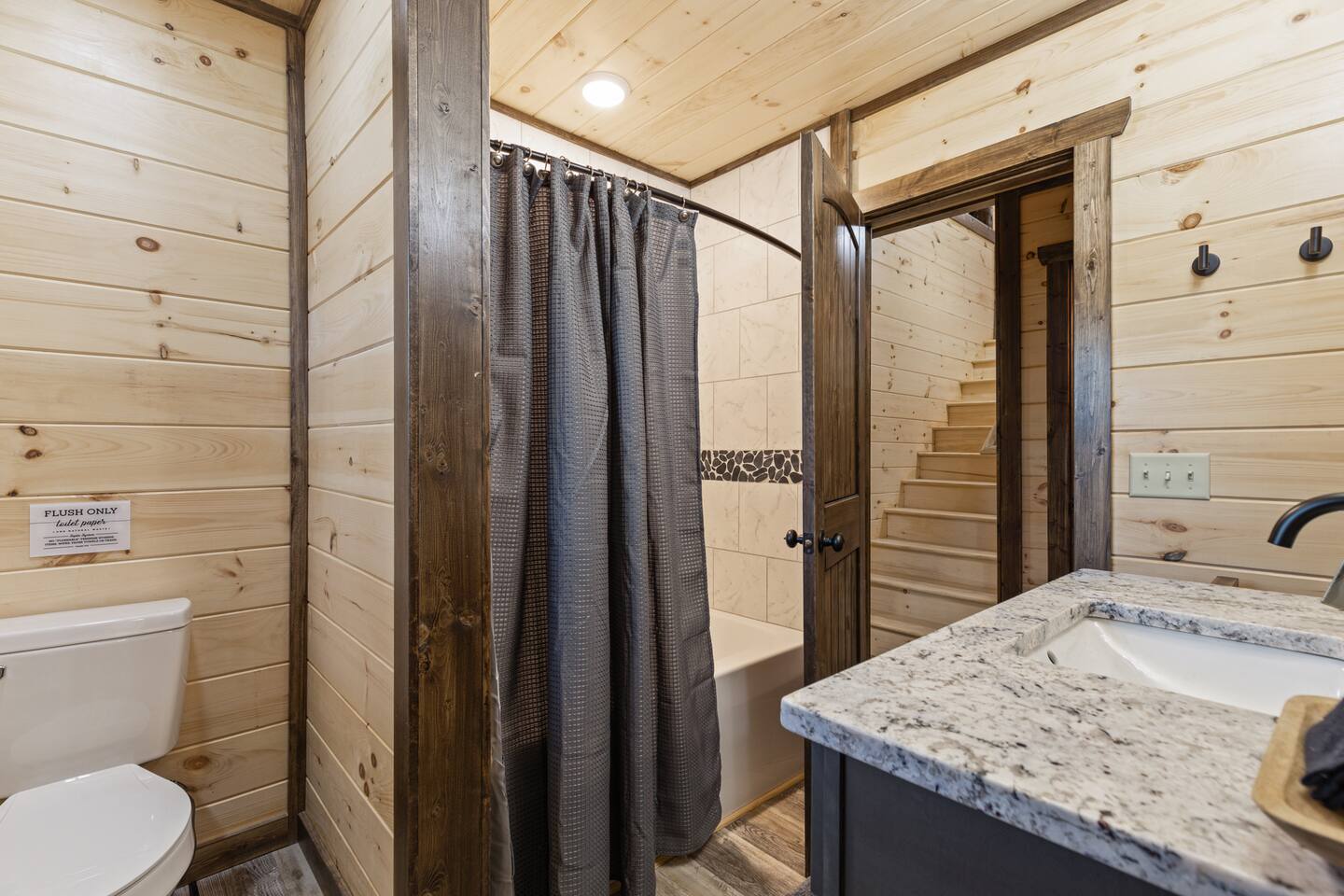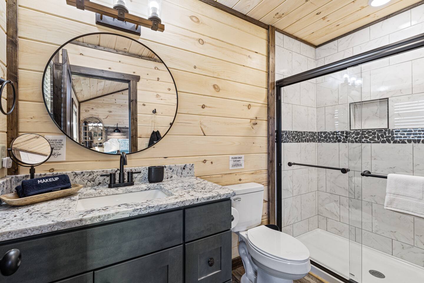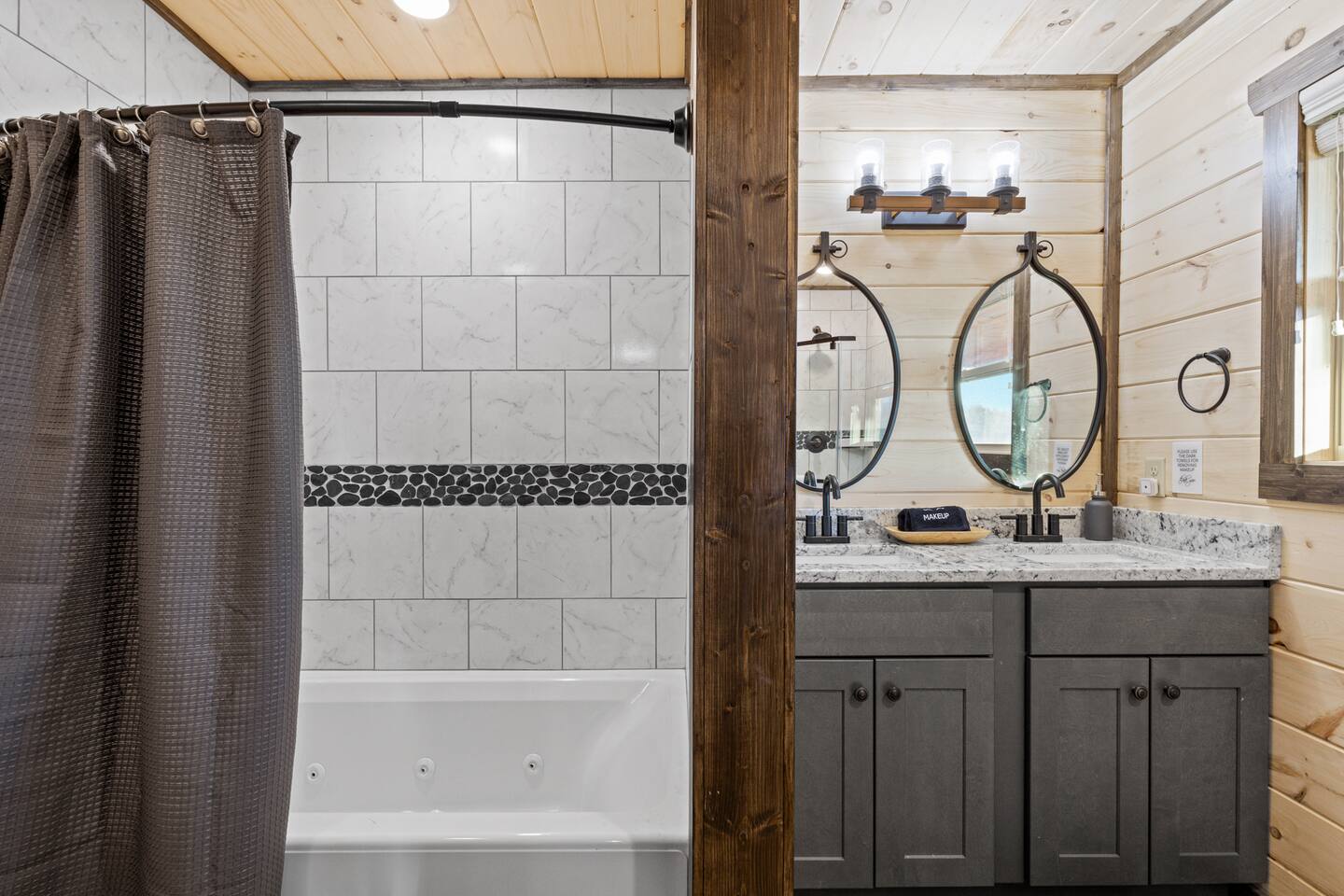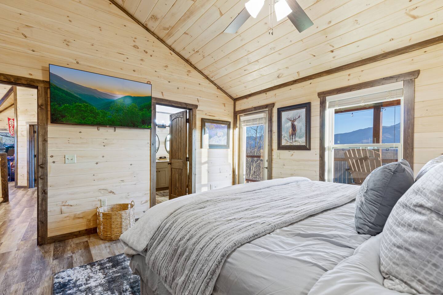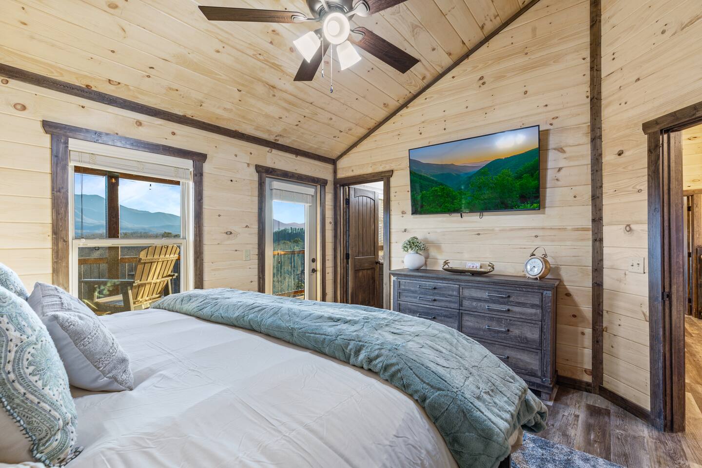 Come see why this is a guest favorite with all 5-star reviews! Nestled amidst the breathtaking Smoky Mountains, The Overlook at Settler's Ridge offers an unrivaled escape for your vacation needs. Embrace the allure of this newly constructed cabin, inaugurated in November 2023, boasting a panoramic view of Mt. LeConte and the picturesque surroundings. This retreat spans three levels and comprises four bedrooms, each accompanied by an exquisite en-suite bathroom. Elevate your stay with a fusion of cabin-chic aesthetics and opulent furnishings, meticulously curated to soothe your senses and elevate your experience. With its prime location mere miles from downtown Gatlinburg, and within moments of hiking trails, waterfalls, Pigeon Forge, and the allure of Dollywood, every convenience is at your fingertips. The main level's open floor plan fosters cherished moments for families and friends to forge lifelong memories. Bask in the serene mountain ambiance from the expansive decks adorned with Adirondack chairs and rockers, or savor intimate moments in the gazebo swing on the main level, tailored for couples seeking seclusion. Just added in January 2024 - an outdoor entertainment area with firepit and custom wood benches, 2 golf holes, and large grill for outdoor cooking! Discover comfort and luxury within the cabin's interiors, featuring a private king bedroom on the main floor, and two additional private king bedrooms on the upper level. The lower level beckons with a bunk room equipped with two sets of full over full bunk beds, complemented by an inviting seating area and a workstation for added convenience. Indulge in the cabin's amenities, including a heated indoor pool room and a rejuvenating hot tub on the lower deck, ideal for unwinding after a day of exploration. Entertainment options abound, with 58" 4K TVs in every bedroom, while the theater room hosts a stunning 75" 4K TV, replete with theater seating offering a sensory-rich experience. Beyond the cabin's splendor, its proximity to local attractions is unmatched. Only moments away from downtown Gatlinburg and nestled within easy reach of the Great Smoky Mountain National Park and Pigeon Forge, The Overlook at Settler's Ridge ensures you spend less time commuting and more time relishing the area's charm. Our commitment to cleanliness, luxurious accommodations, and top-notch customer service is unwavering. We strive to ensure that your stay at The Overlook at Settler's Ridge becomes an annual tradition, promising an unforgettable experience. Should you have any queries, please don't hesitate to contact us.