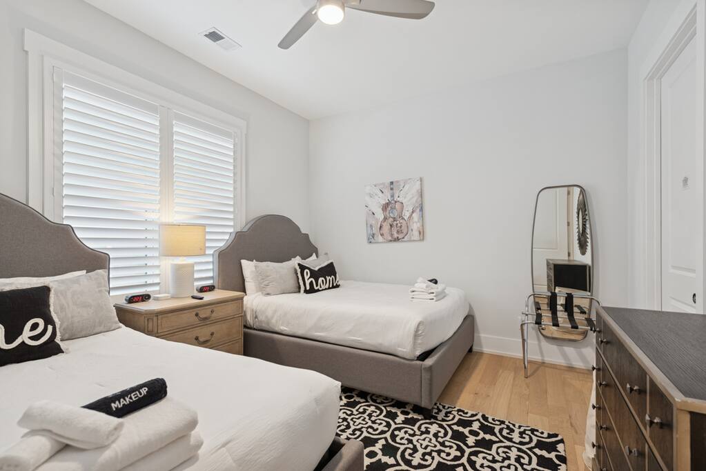 Welcome to your spacious top-floor Nashville retreat. This 1,625 sq ft, single-level 3BR/3BA condo comfortably sleeps 8 and is ideal for families and groups. Enjoy a large living area, dedicated office with doors, high ceilings, private covered patio, elevator access, and secure indoor garage parking. Minutes from Vanderbilt, Belmont, 12 South, and Broadway—roomy, comfortable, and perfectly located.